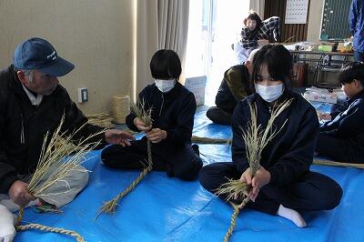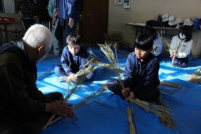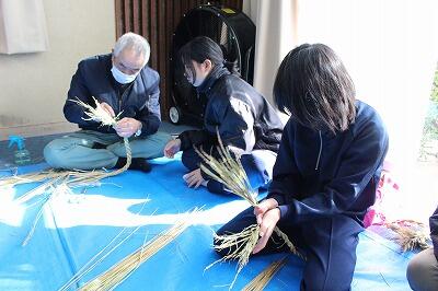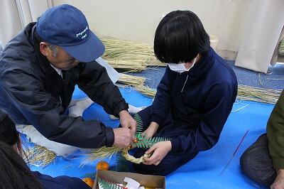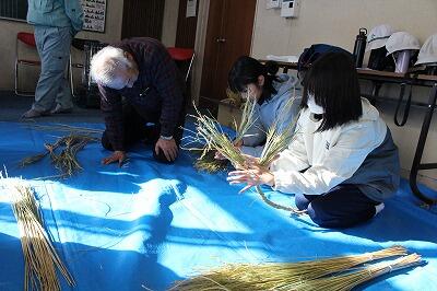 地元老人クラブの協和会のみな様の全面的なご協力をいただいて、5・6年生はしめ縄飾りづくりをしました。
